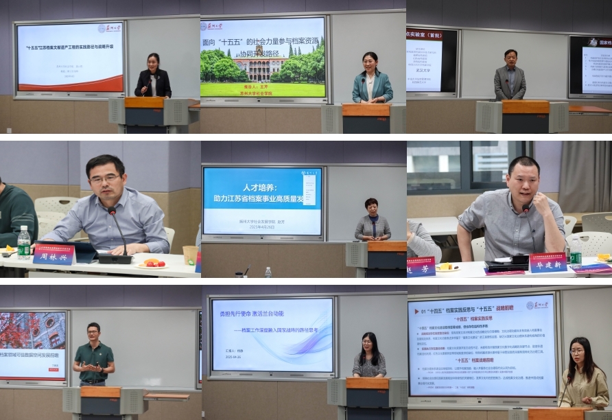 4月25日至26日,江苏档案事业发展规划学术研讨会暨2025年江苏省档案学会档案基础理论专委会会议在苏州大学独墅湖校区举行。本次研讨会由江苏省档案学会、苏州大学社会学院主办,《档案与建设》编辑部、苏州大学社会学院档案与电子政务系、江苏省档案学会基础理论专委会承办,主要围绕“从‘十四五’到‘十五五’:江苏档案事业的传承、变革与跃升”这一主题展开深入研讨。